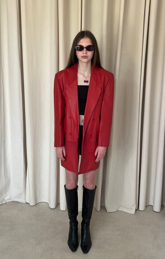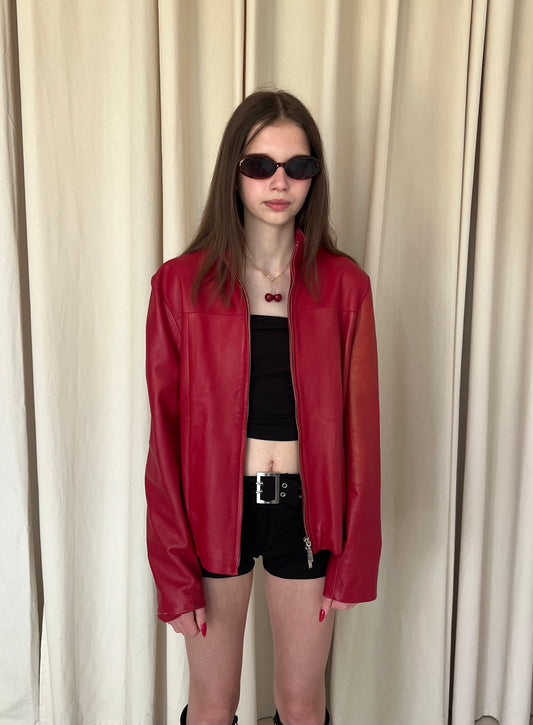 WyprzedaneCzerwona kurtka ze skóry naturalnej