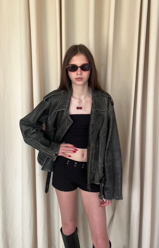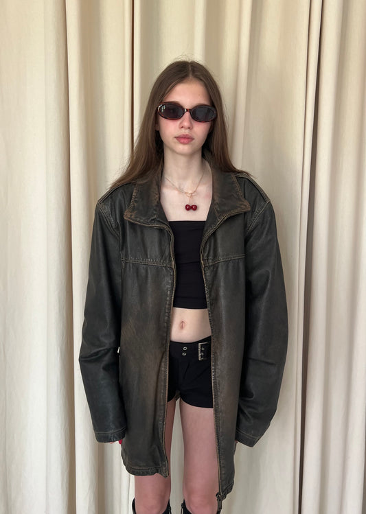 WyprzedanePrzecierana kurtka ze skóry naturalnej