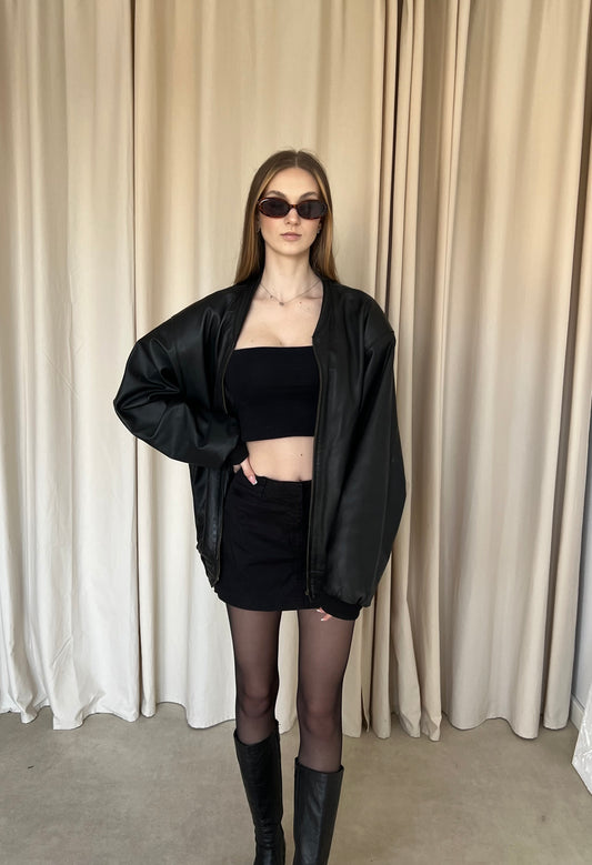 WyprzedaneKurtka bomber ze skóry naturalnej