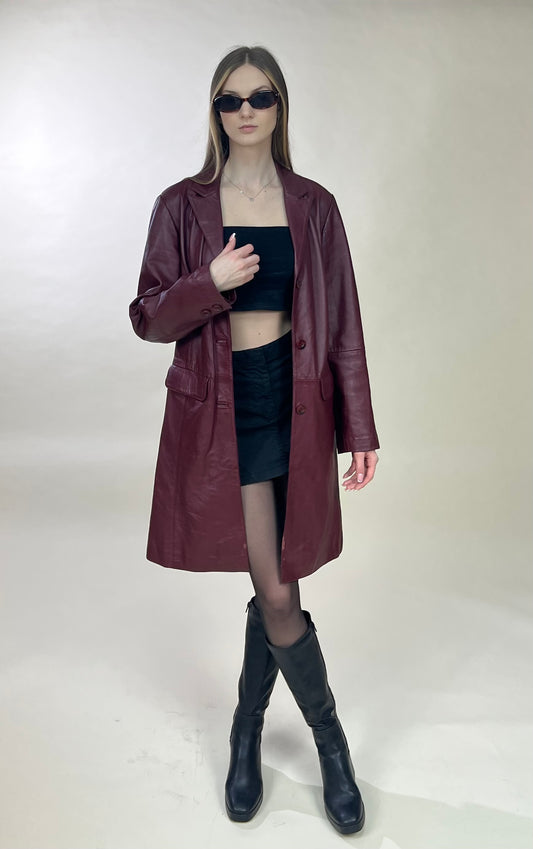 WyprzedanePłaszcz bordowy ze skóry naturalnej
