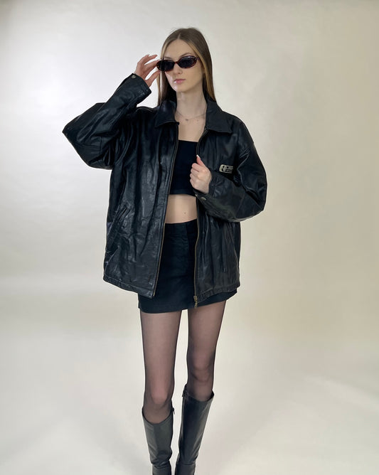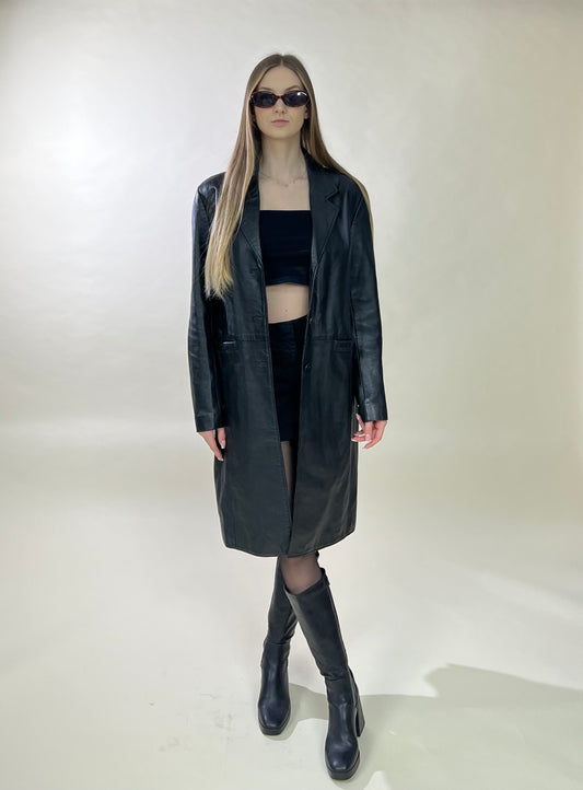 WyprzedaneCzarny płaszcz ze skóry naturalnej