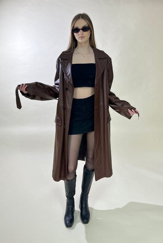 WyprzedanePłaszcz ze skory naturalnej brązowy