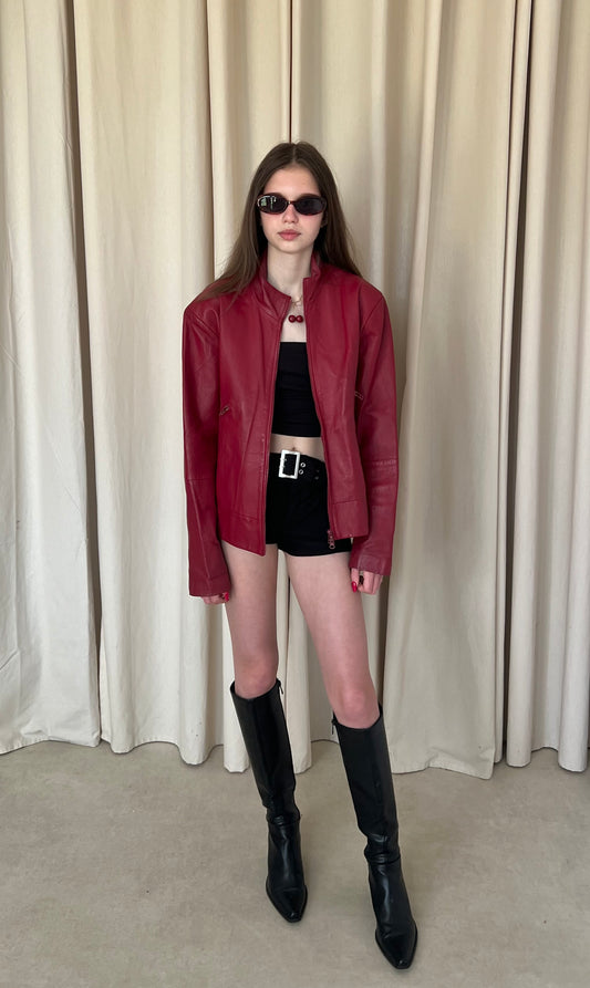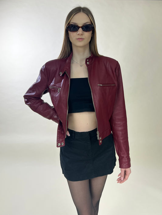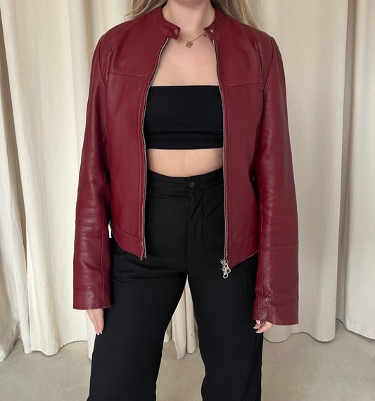 Sold outBurgundy motorcycle jacket