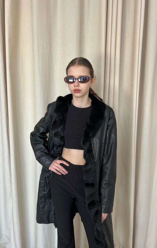 Sold outGenuine leather coat with fur trim