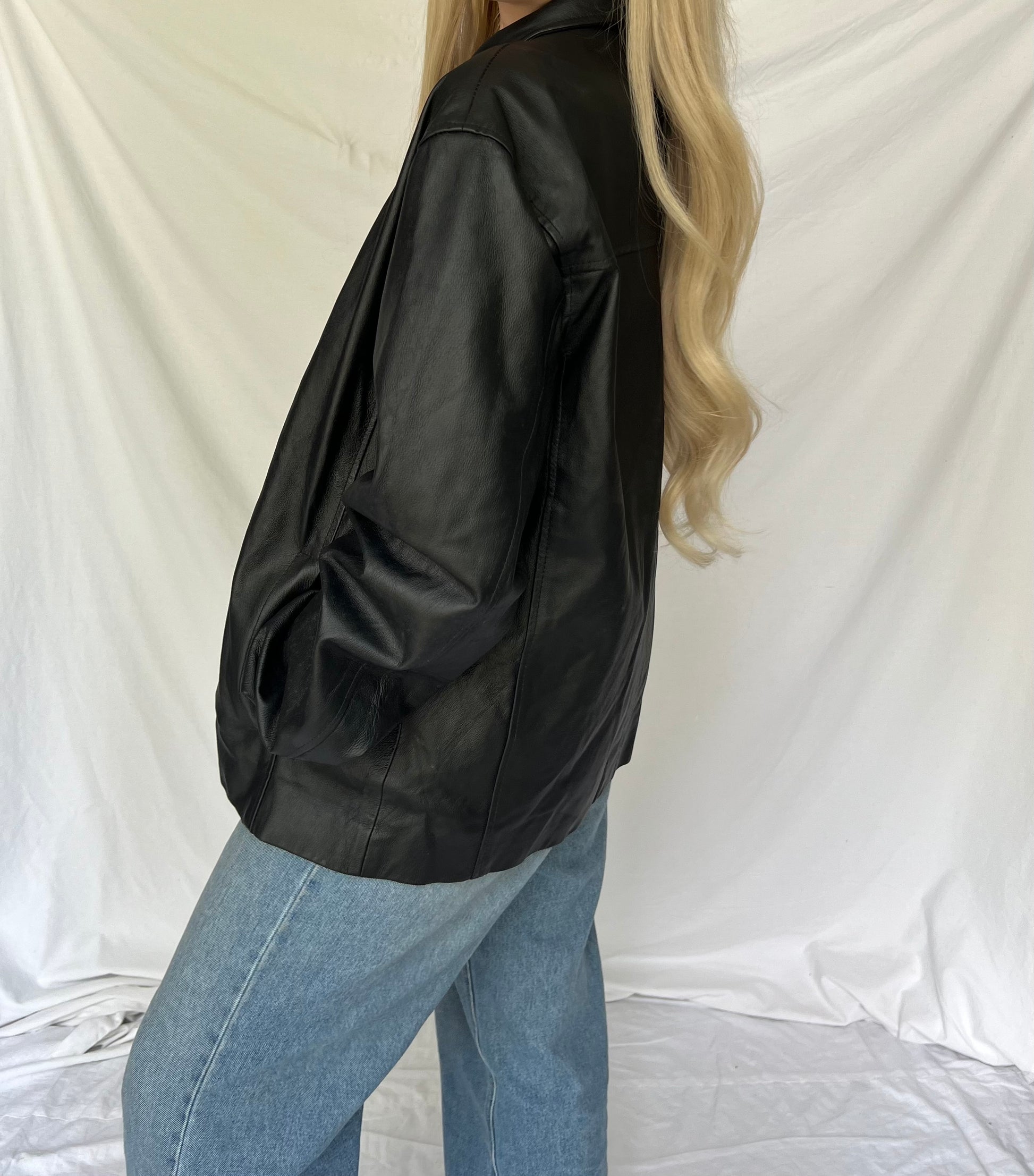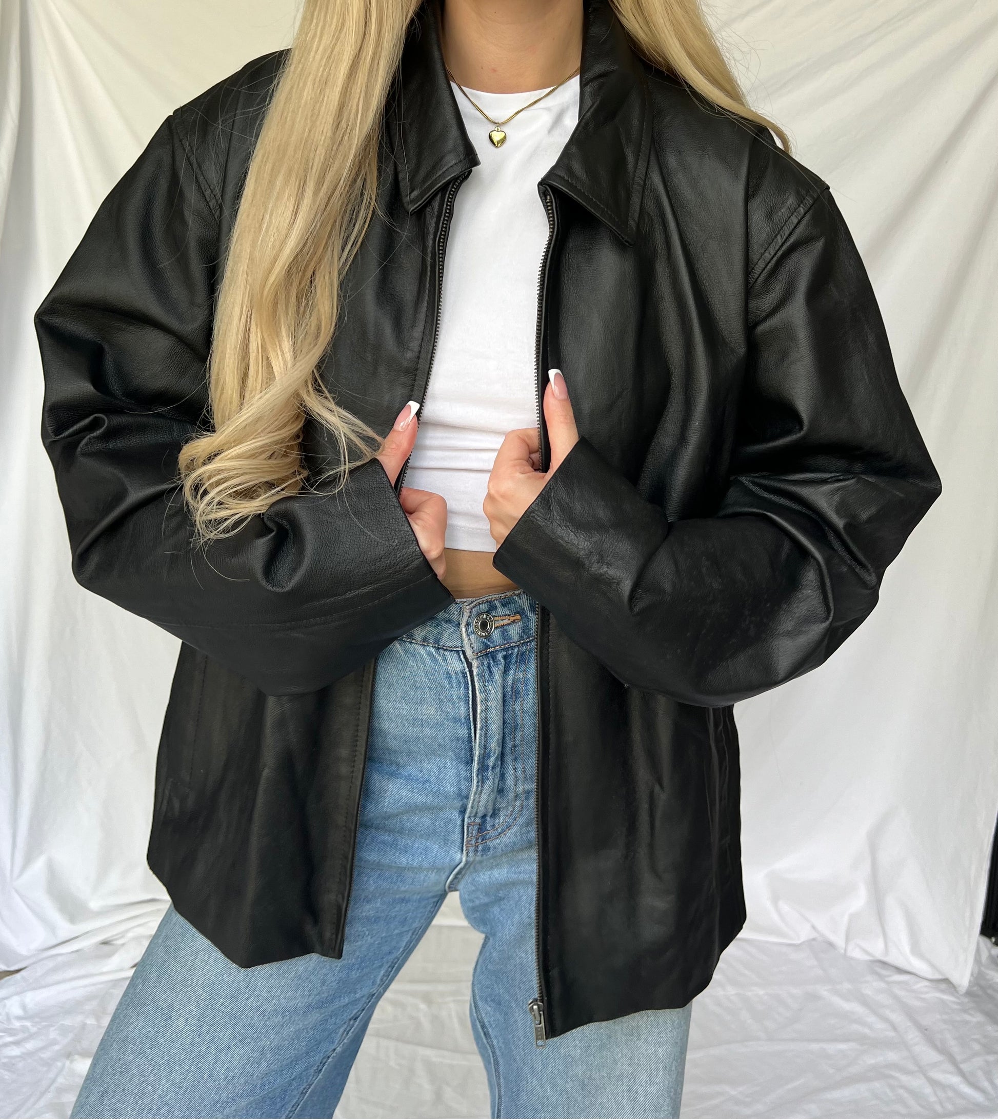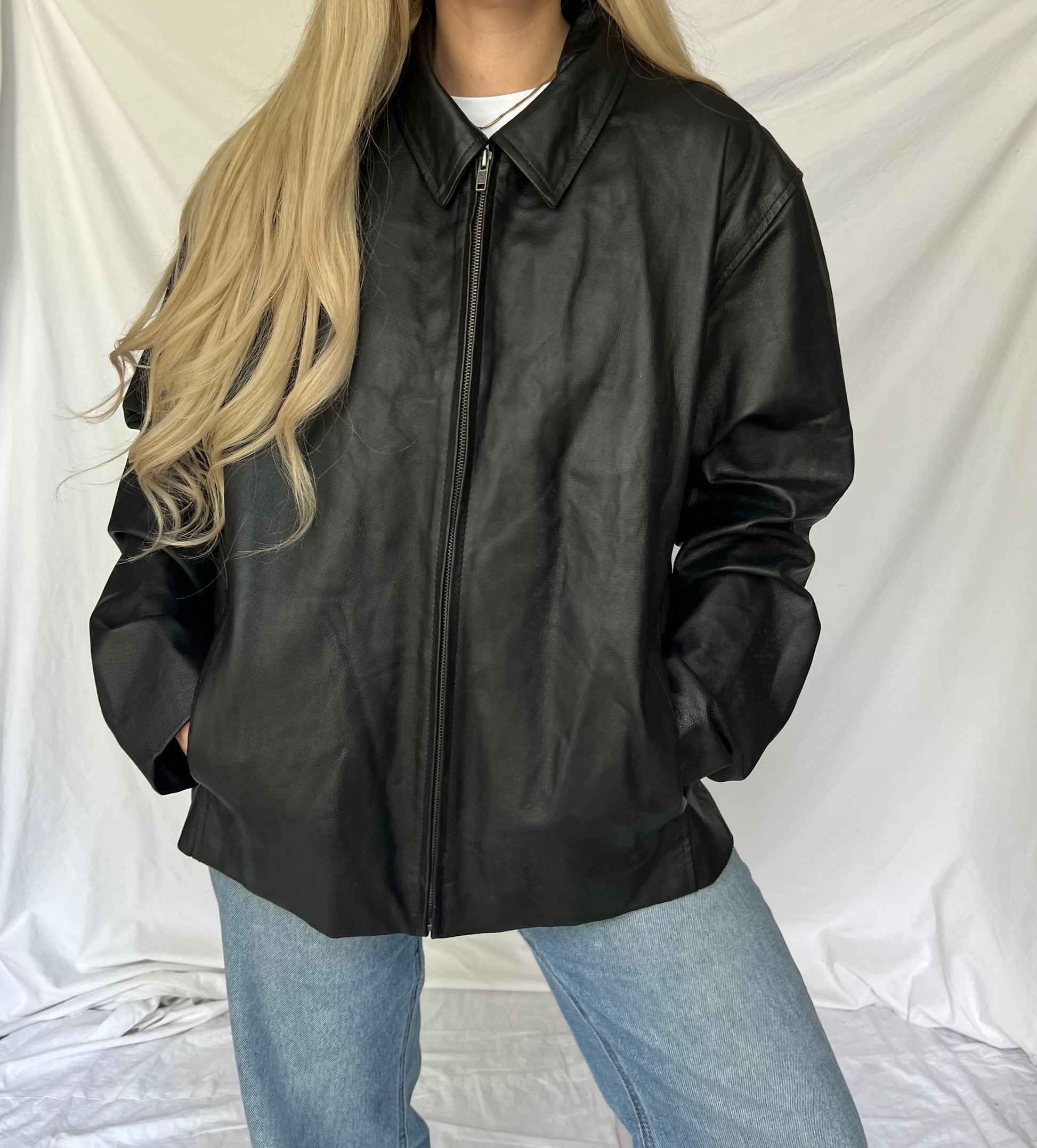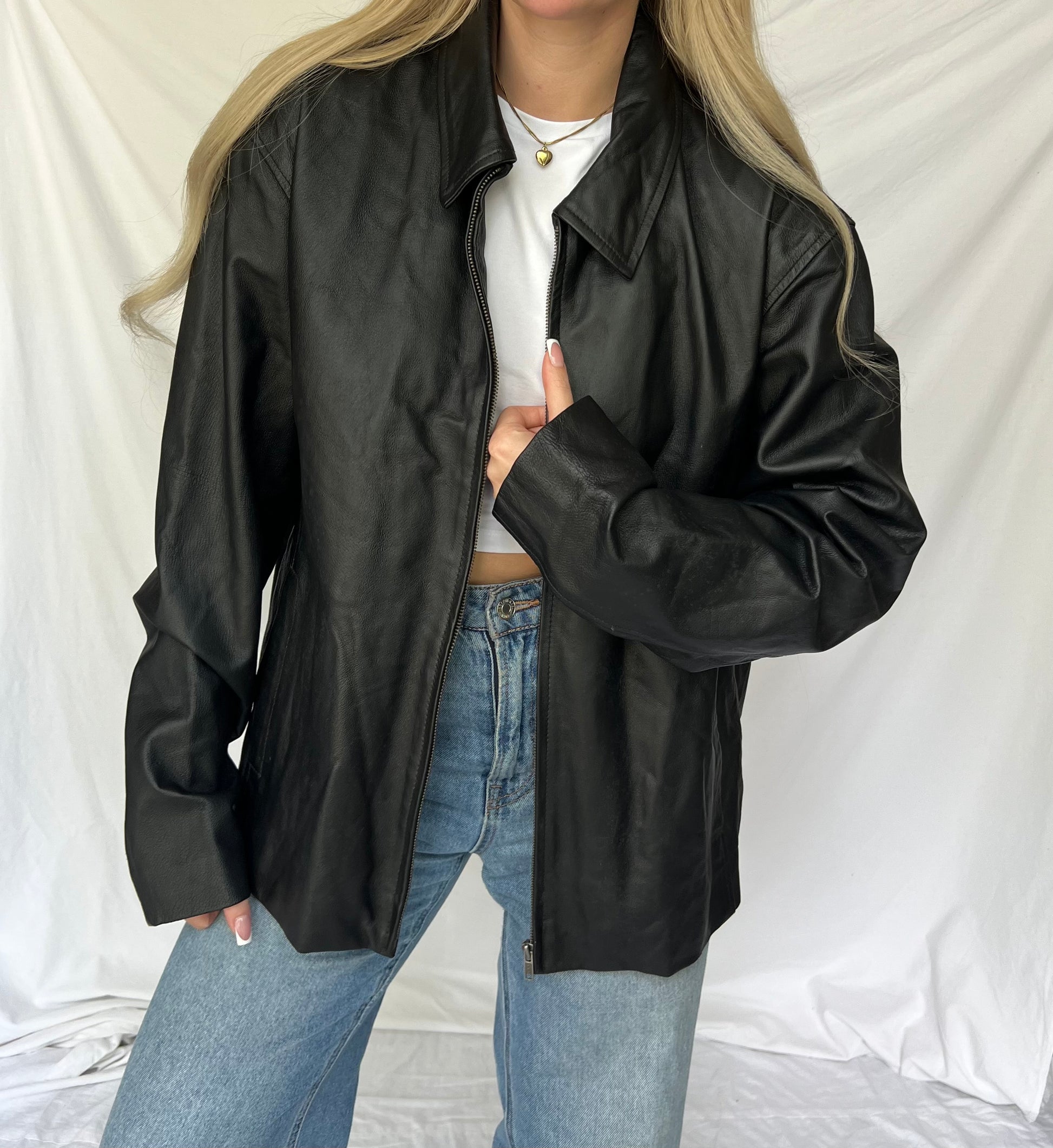 Czarna kurtka skórzana, miękka skóra naturalna.