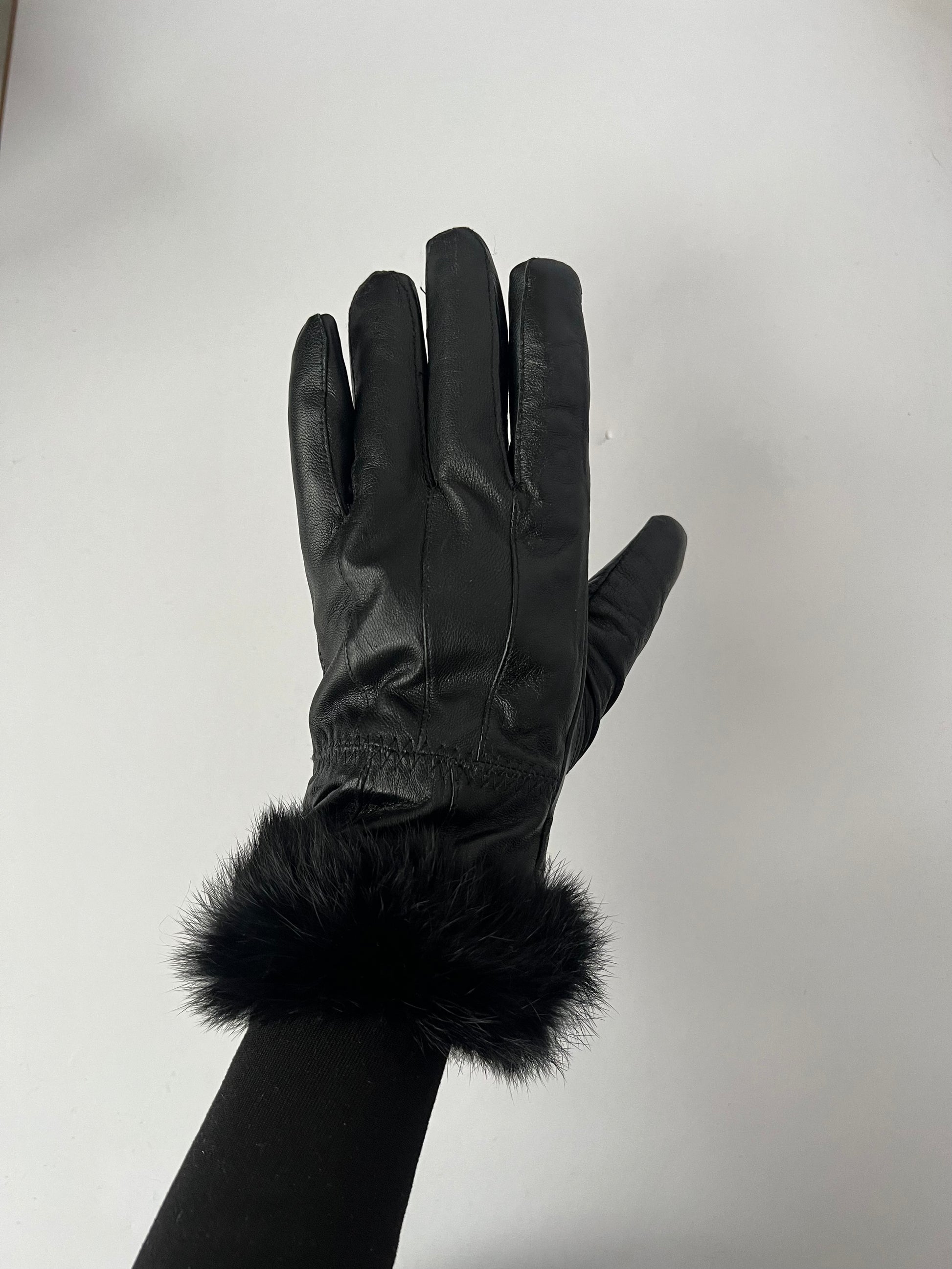 Czarne skórzane rękawiczki z futerkiem