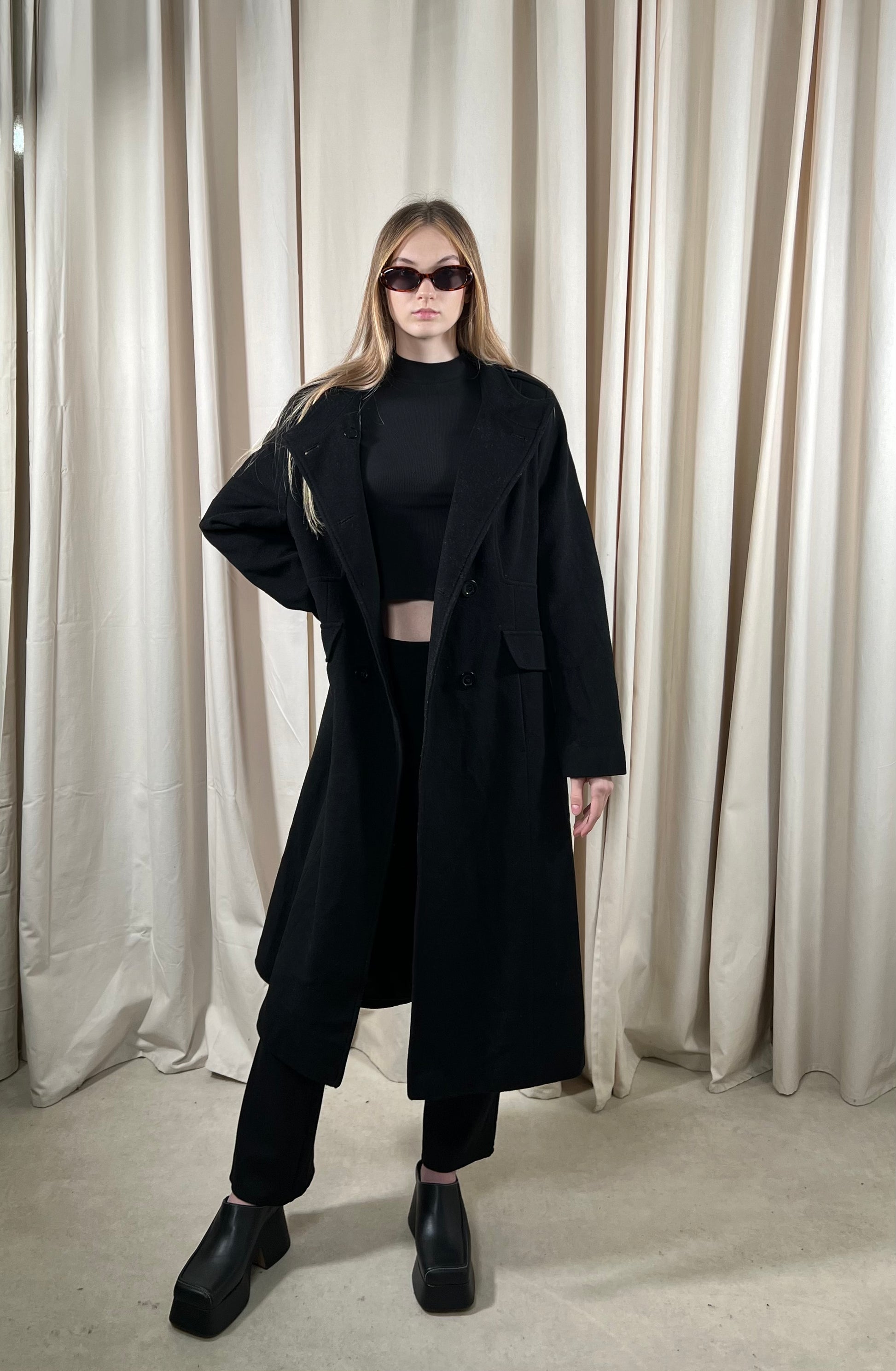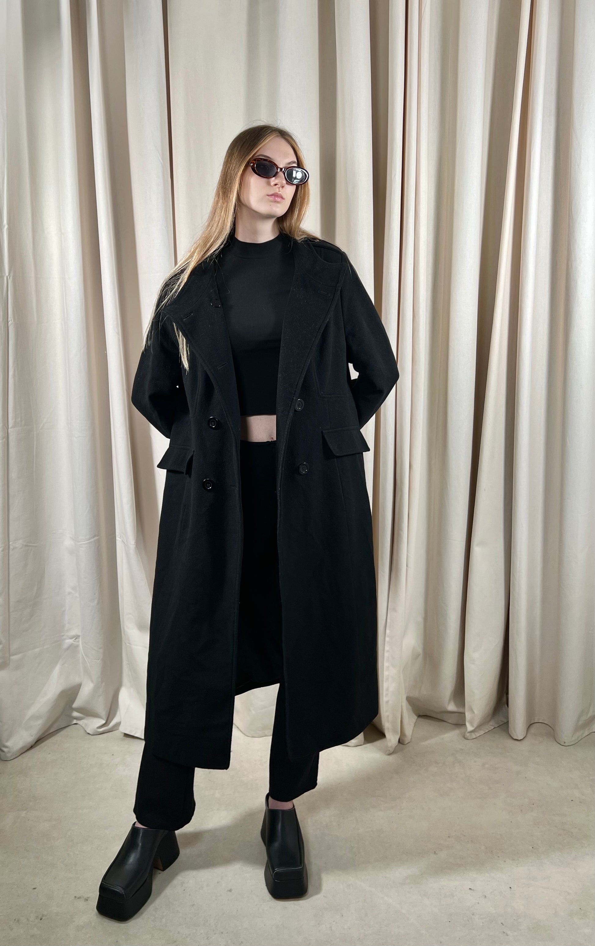 Czarny płaszcz 70% wełna