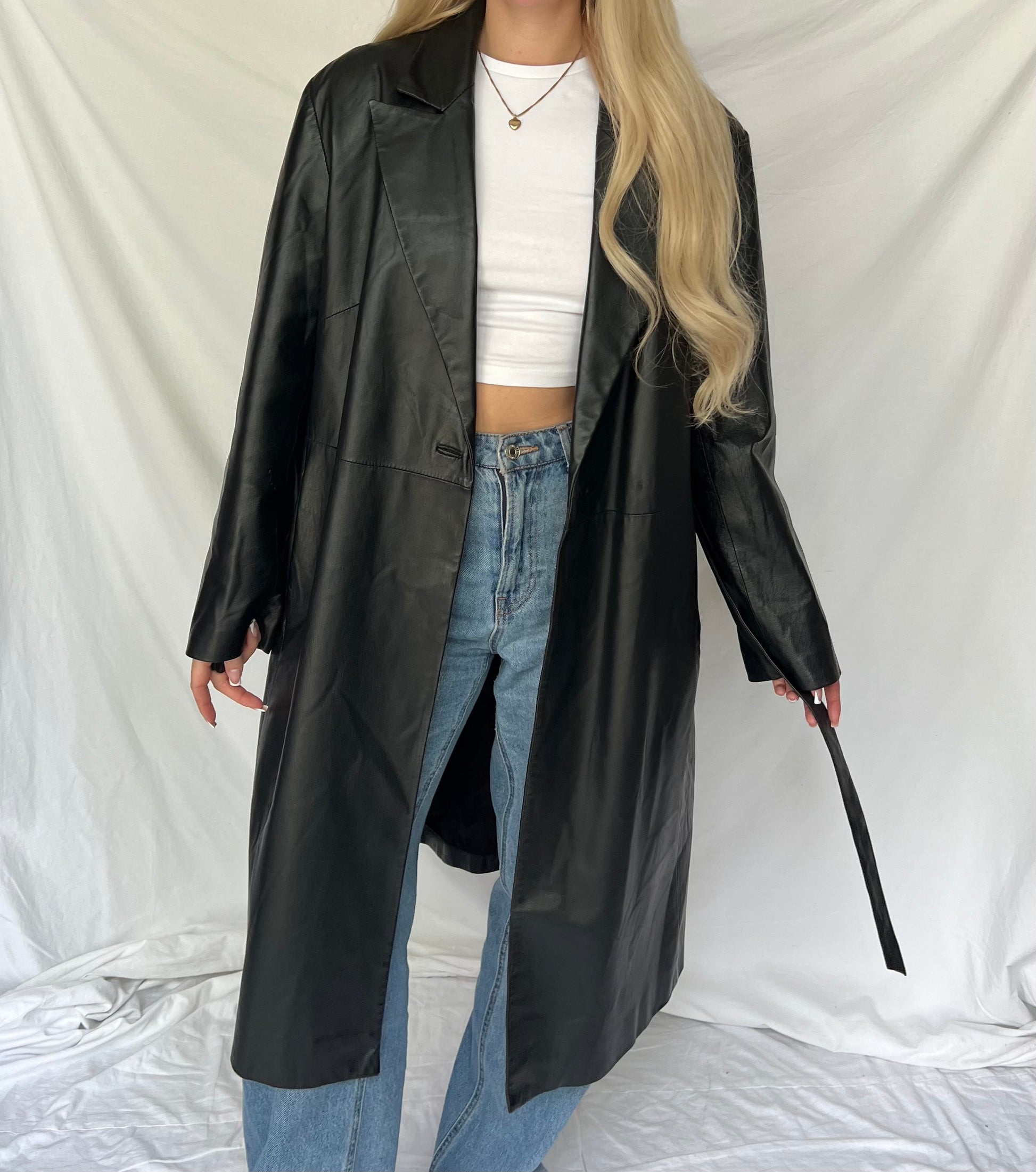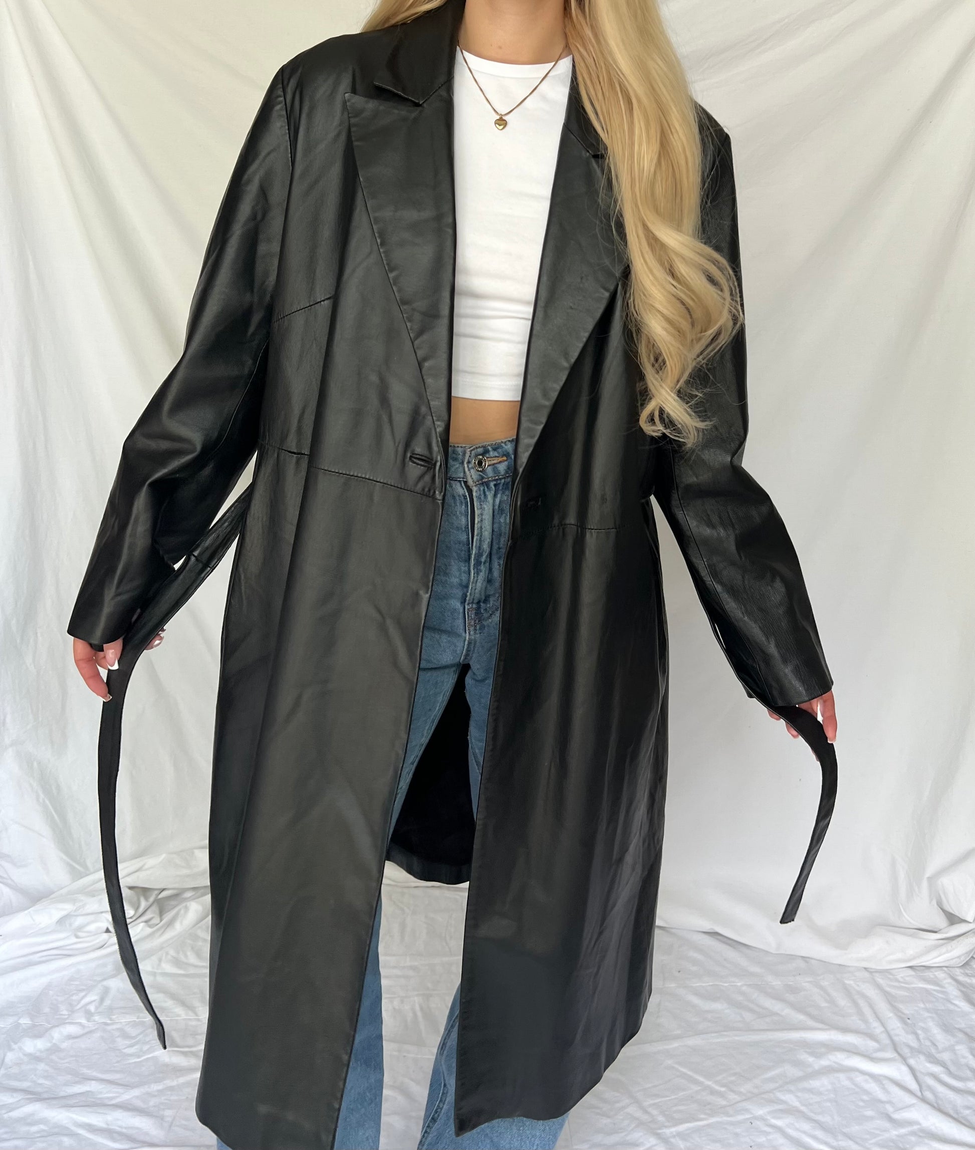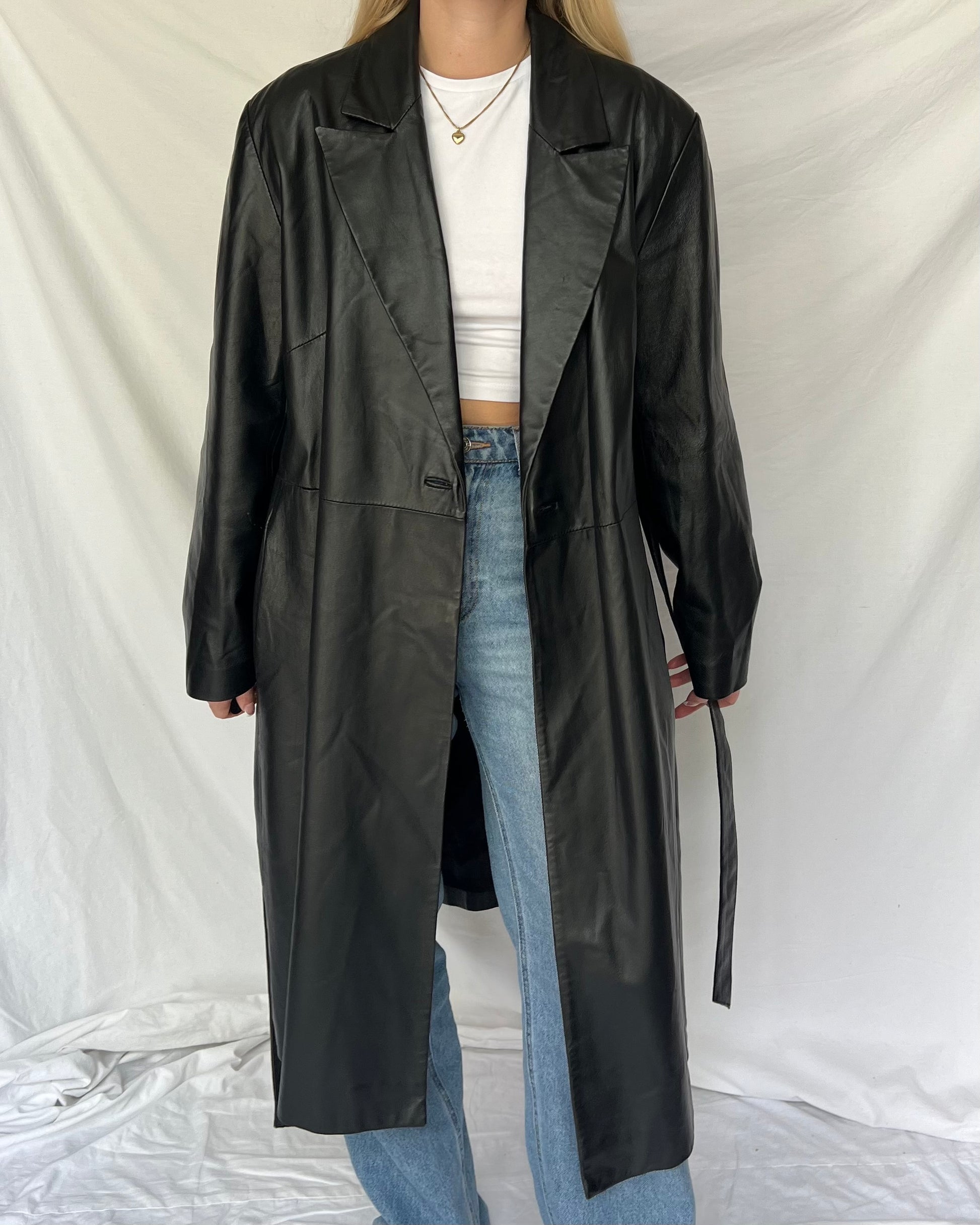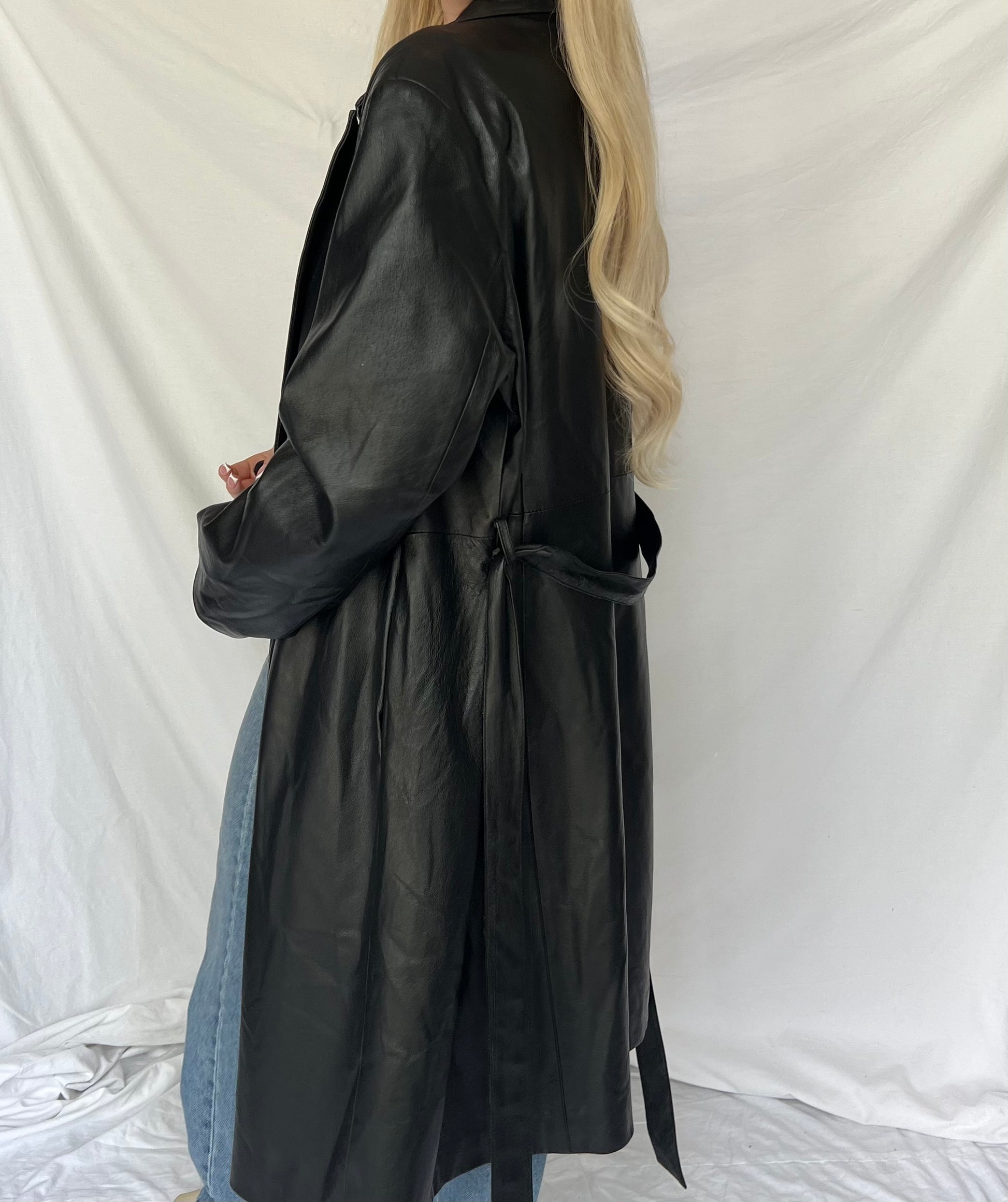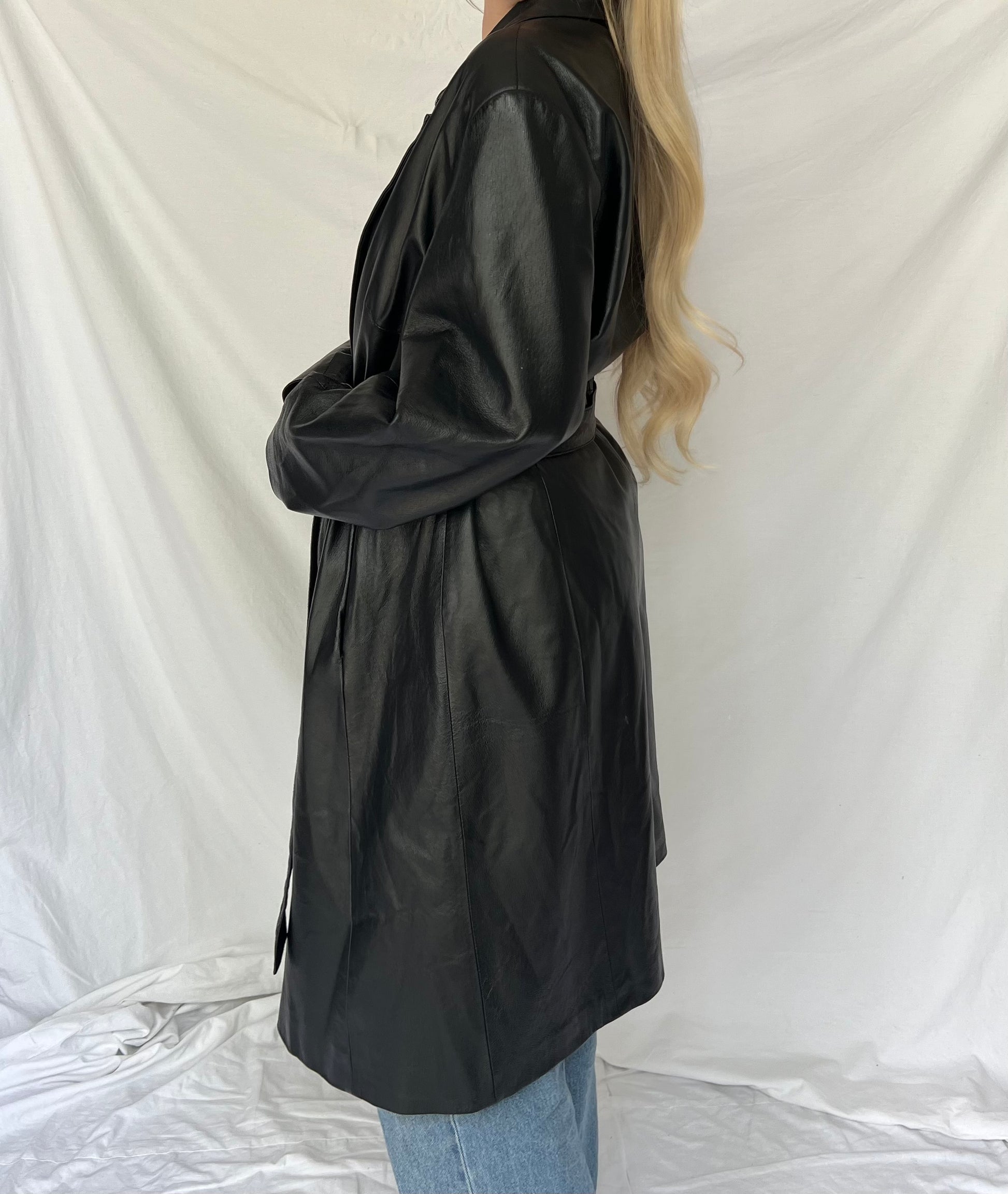 Czarny skórzany płaszcz