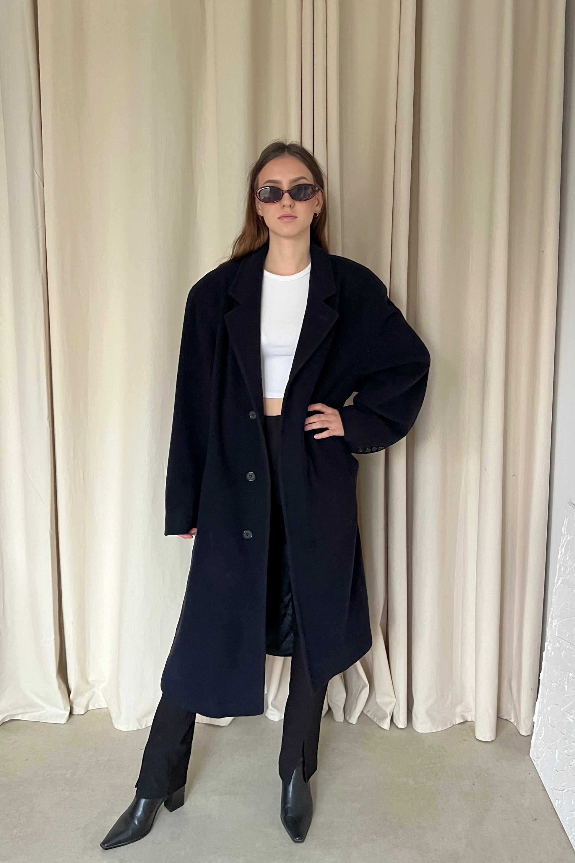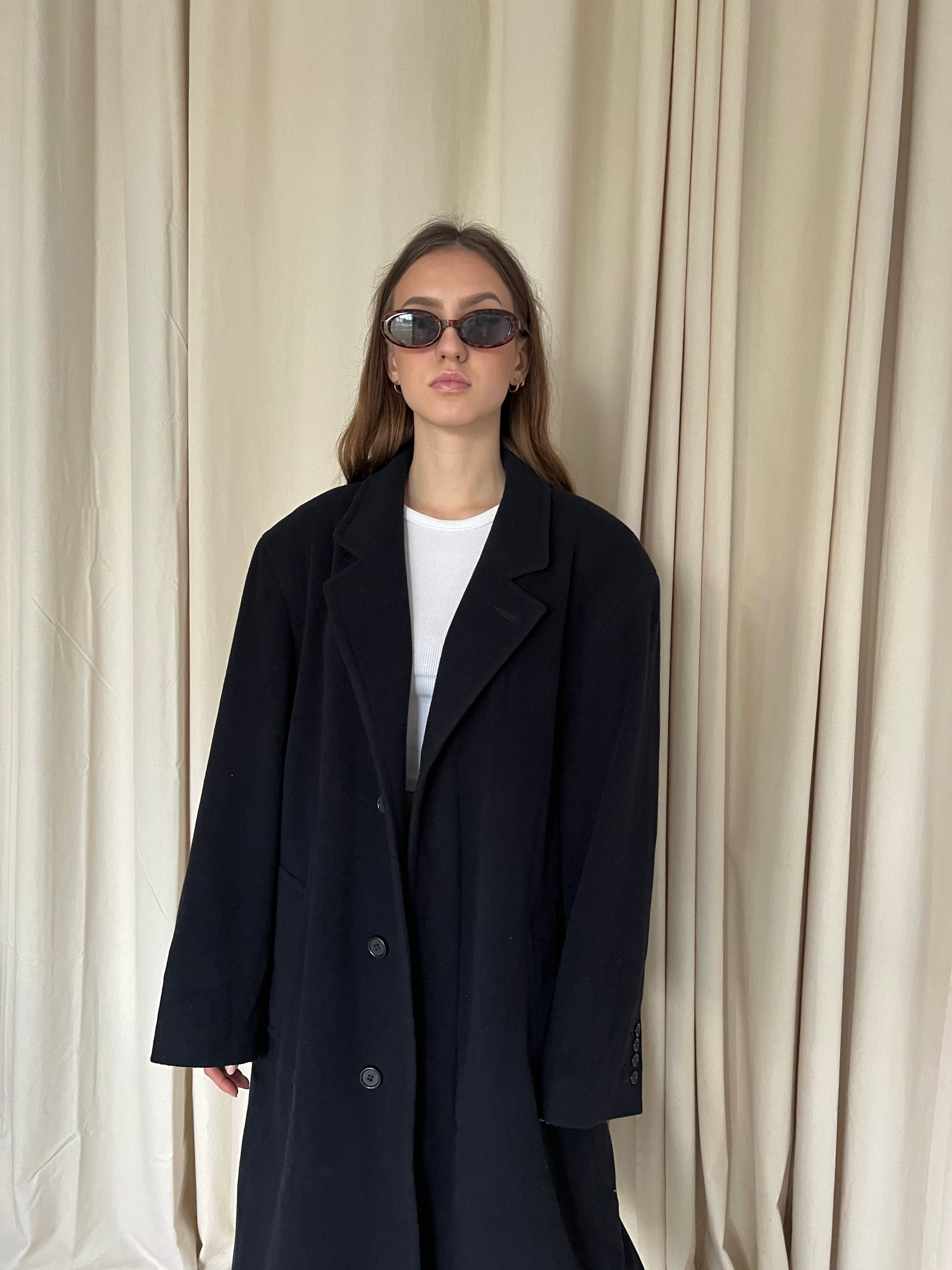 Granatowy płaszcz 70% wełna