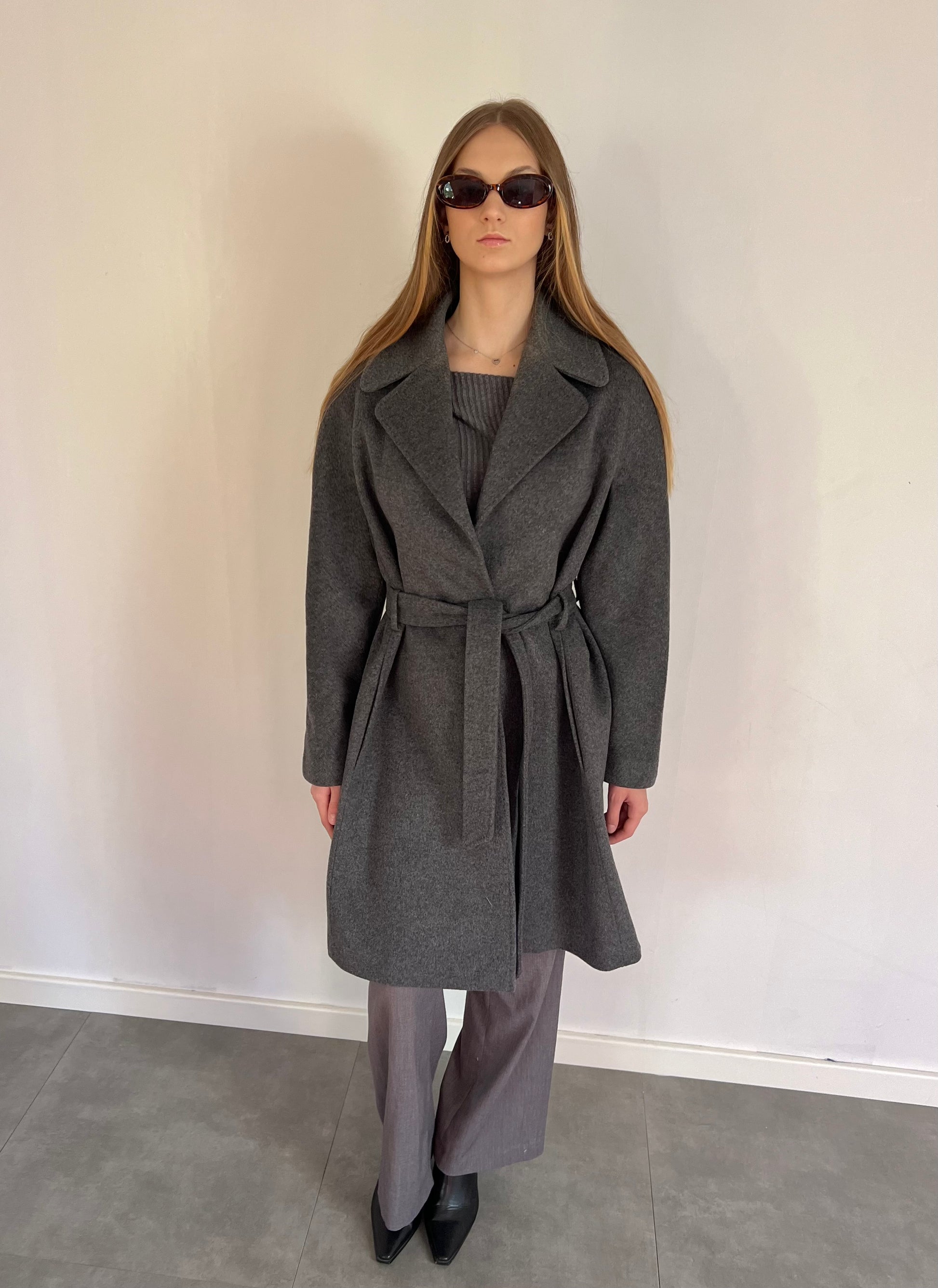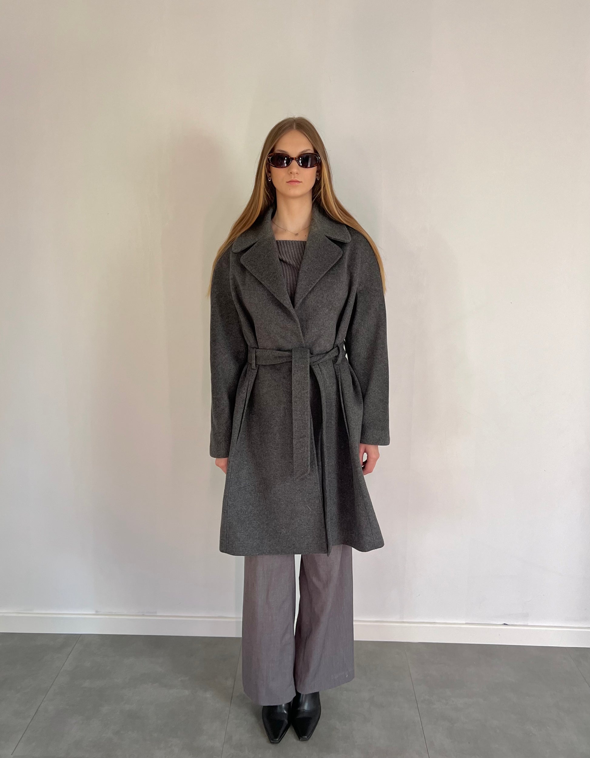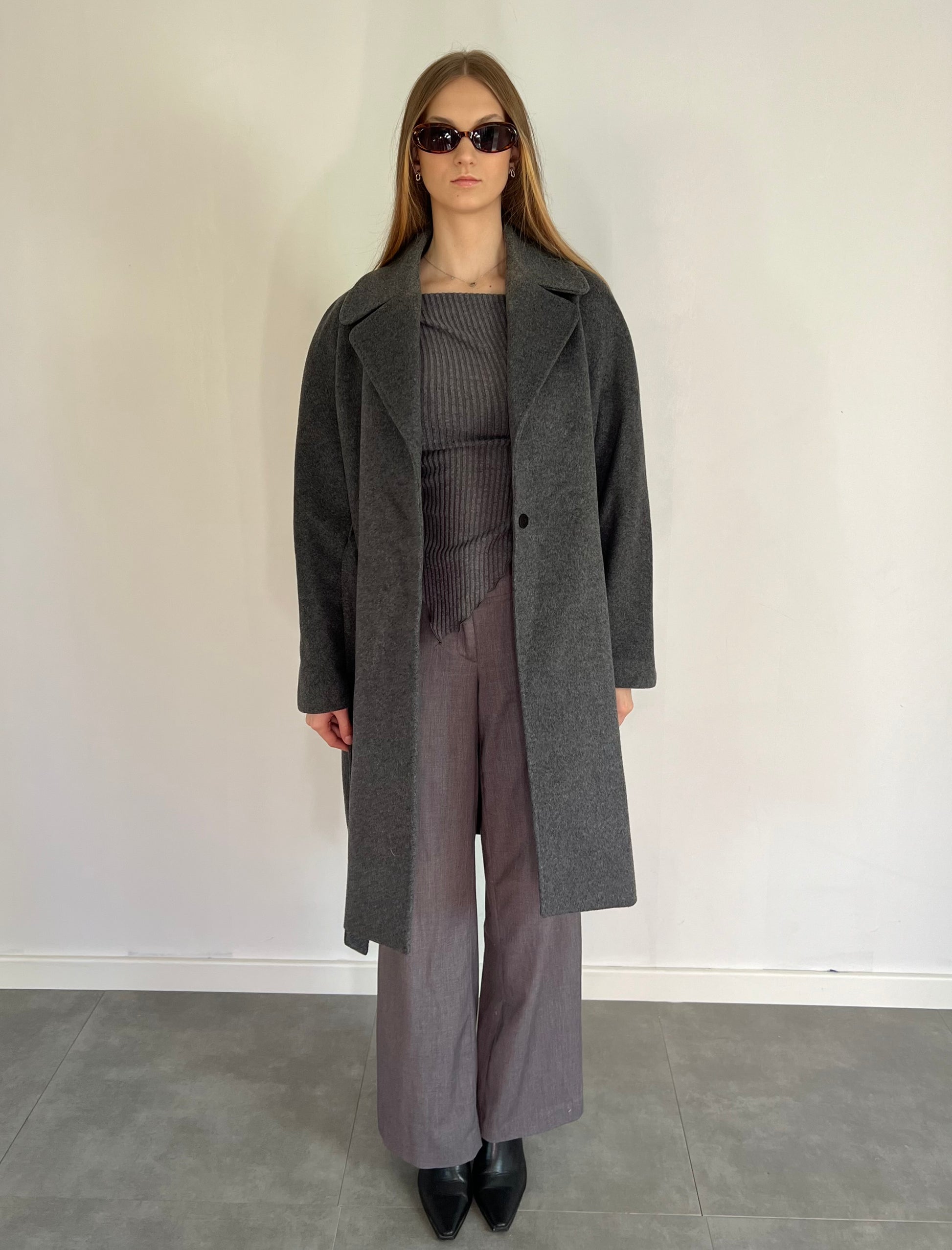 Szary wełniany płaszcz