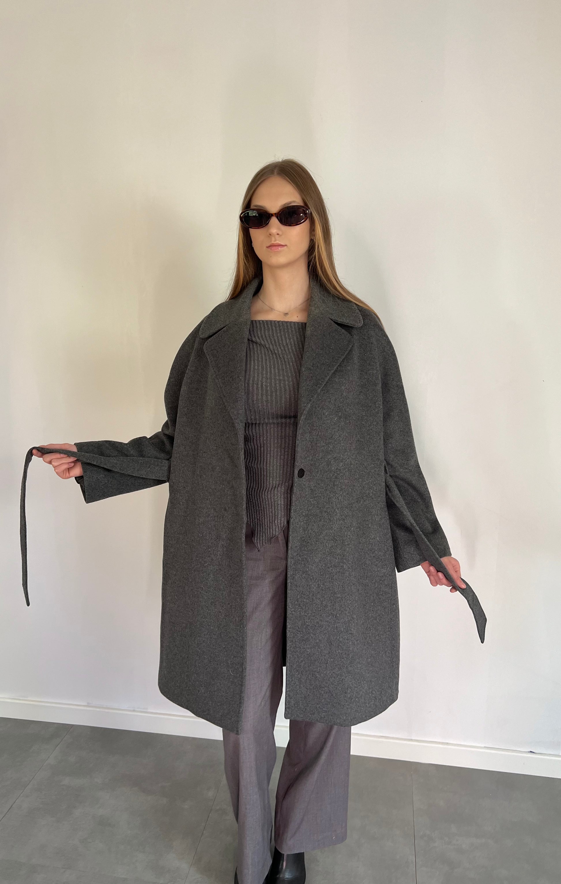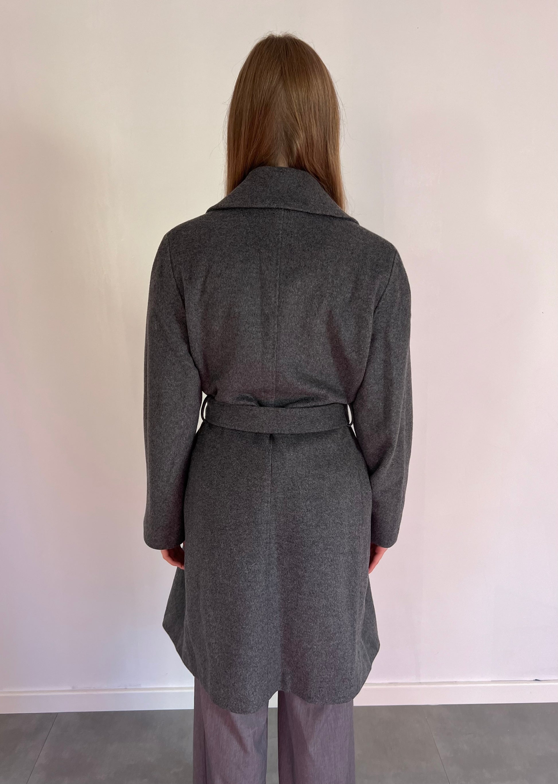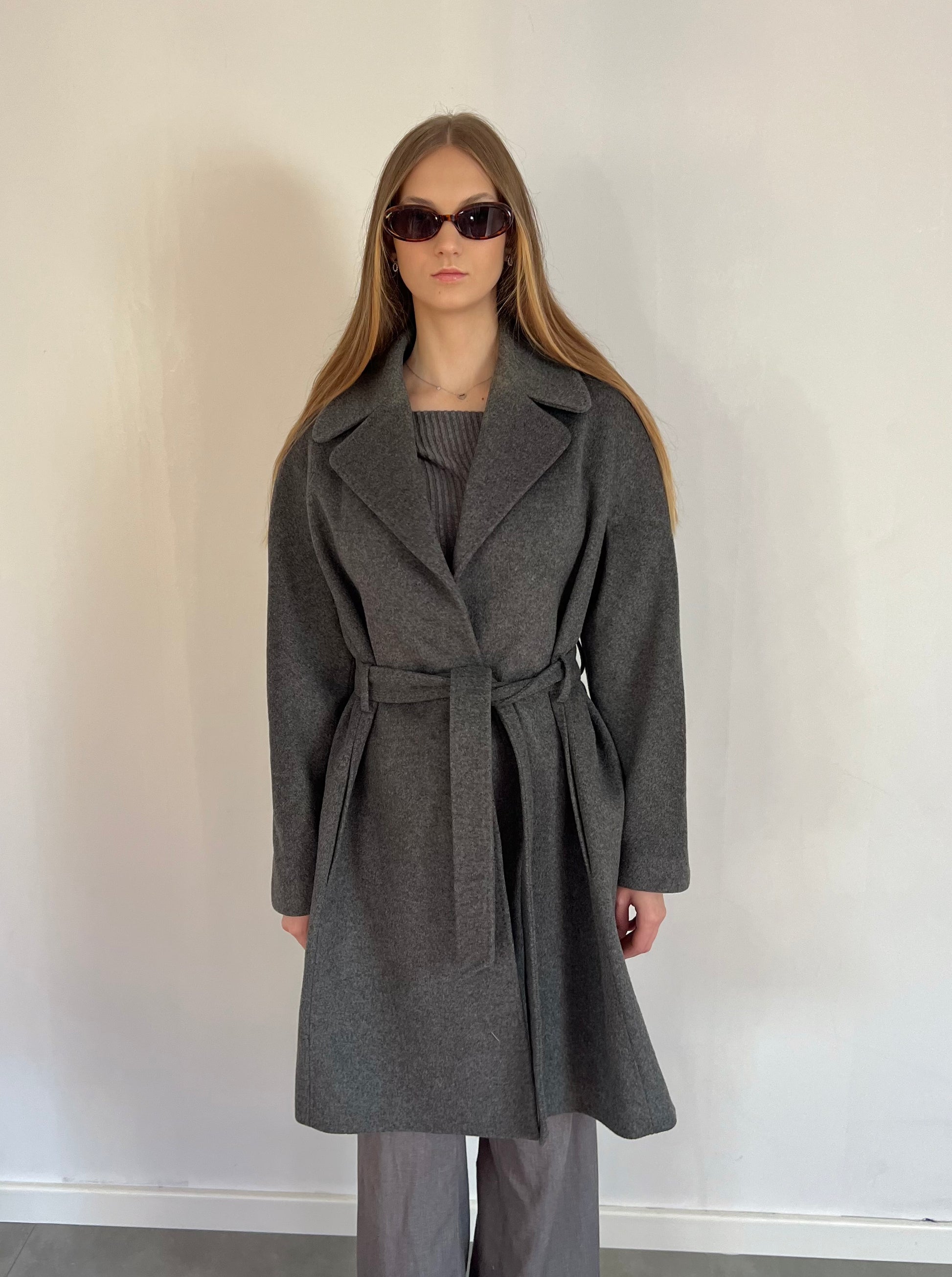 Szary wełniany płaszcz